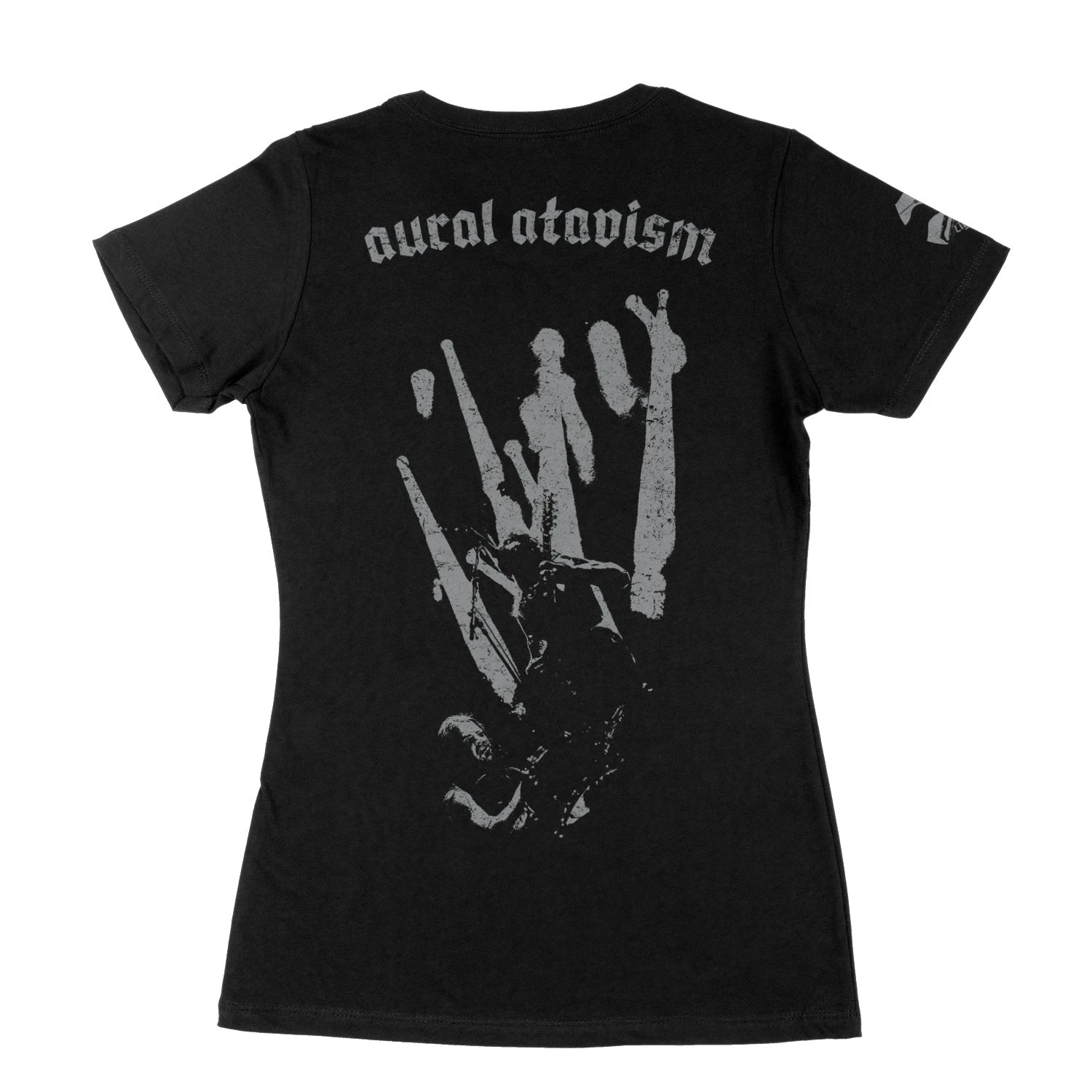 BÖLZER Women’s T-Shirt featuring band logo printed on the front and the text: Aural Atavism printed on the back. Design by BÖLZER