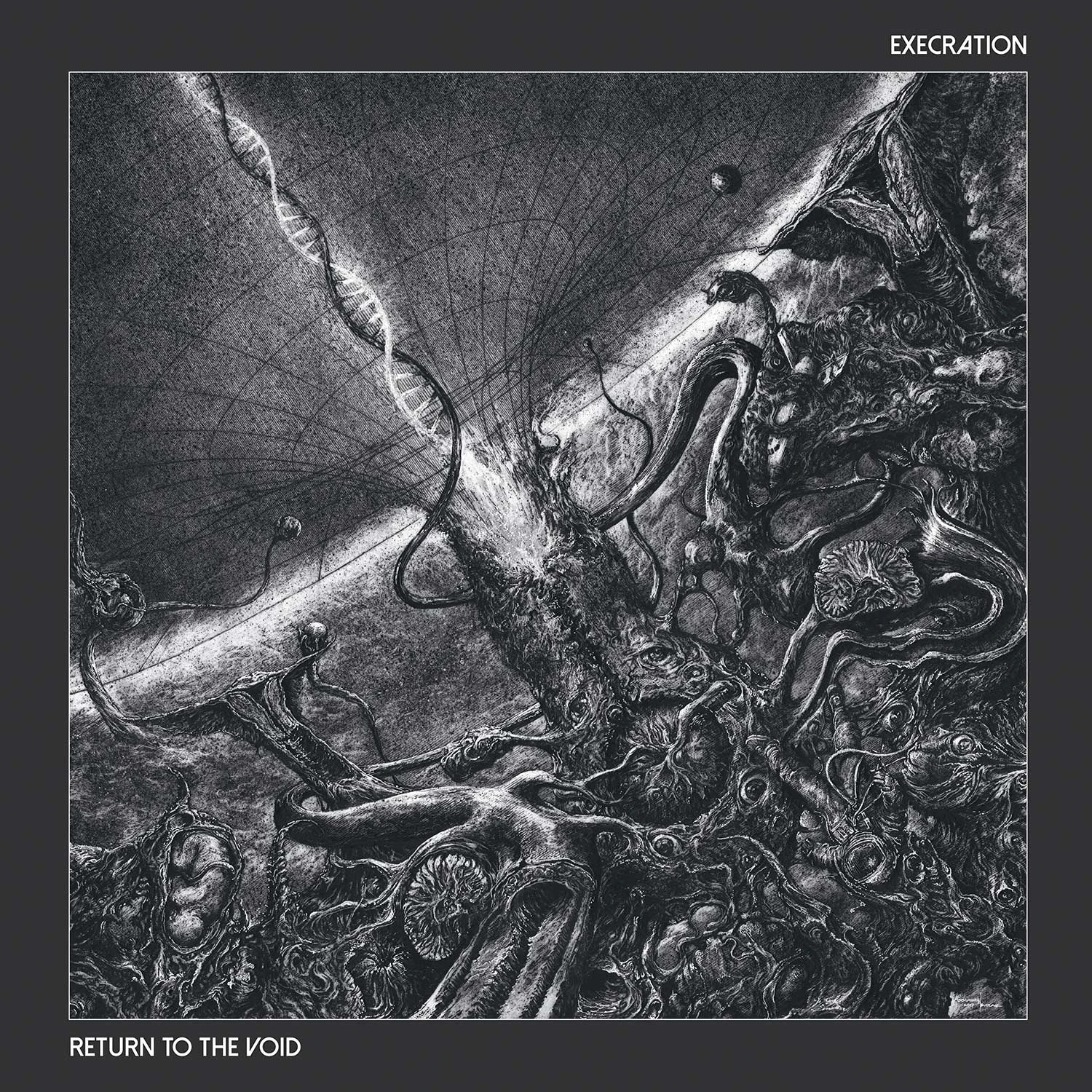 Unlike the previous two albums, Execration’s new album, “Return to the Void”, doesn’t mark a dramatic stylistic shift. The band comments: “It is our most compact album to-date, shorter and with tighter compositions. It’s catchy, complex, prog-infused and intense all at the same time. Coming off of two double 12” vinyl albums, the first clear goal for writing ‘Return to the Void’ was to deliver the same kind of dynamic and shifting song-writing in a more condensed to-the-point package. Stripping songs down to their essential core has been a driving force while writing, and it shows – there is not a wasted moment on the album. Ticking it at 42 minutes – a perfect fit for the vinyl format – the album takes the listener through a whirlwind of thrash, death, black, and even heavy metal, fast and slow parts, and the trademark Execration shifts in mood, tempo, and atmosphere. As with the previous two albums, we wanted to capture the feel of a live performance, so all the basic tracks (drums, guitars, bass) were recorded live in our rehearsal studio in Oslo over the course of a weekend. Vocals, synths, and various effects where recorded the following weeks with assistance from Andreas Tylden (One Tail, One Head / Altaar). The album was then mixed and mastered by Tom Kvalsvoll of Kvalsonic Labs.