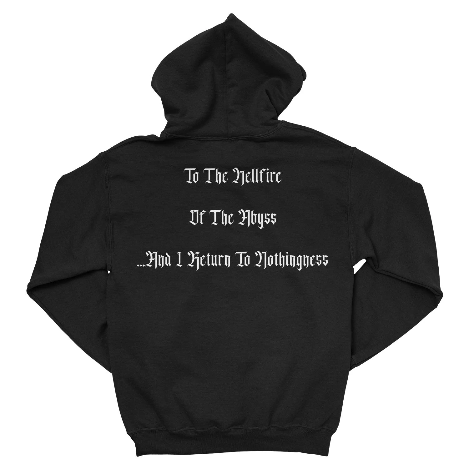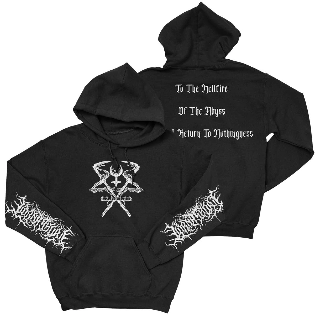 Lorna Shore “Sigil” black pullover hoodie. 4 location print. Features sigil on front, EP track listing on back, and band logos on sleeves. Officially licensed. Printed on standard pullover.