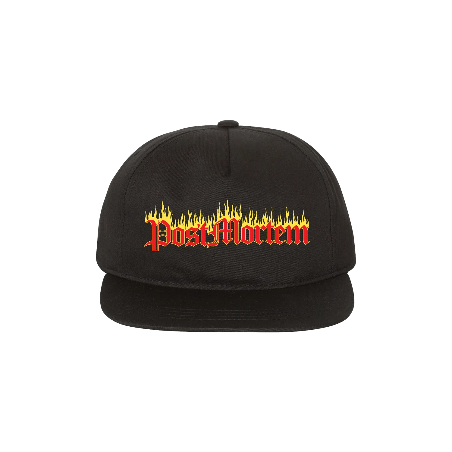 We are proud to present Postmortem’s very own classic logo cap. The unstructured fit and premium embroidered logo will have you looking like Metal royalty.