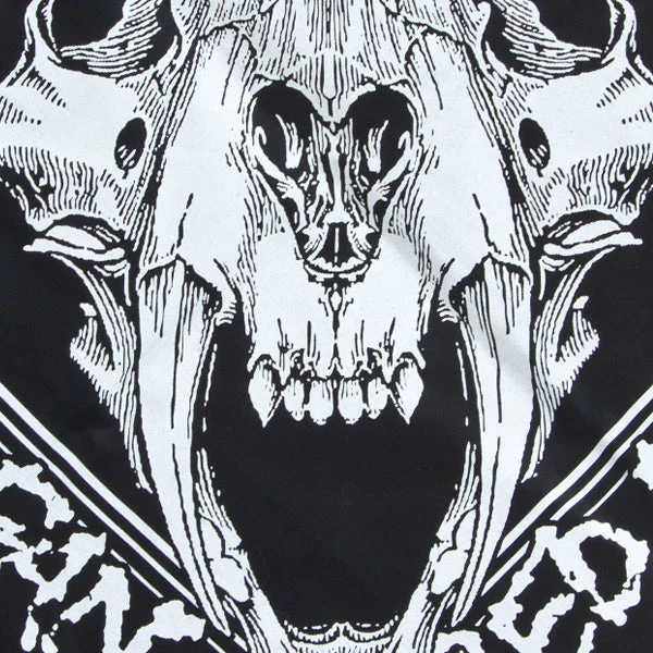 This slick bandana features the sabertooth skull surrounded by the Red Fang logo. Wear this to the next family reunion.
