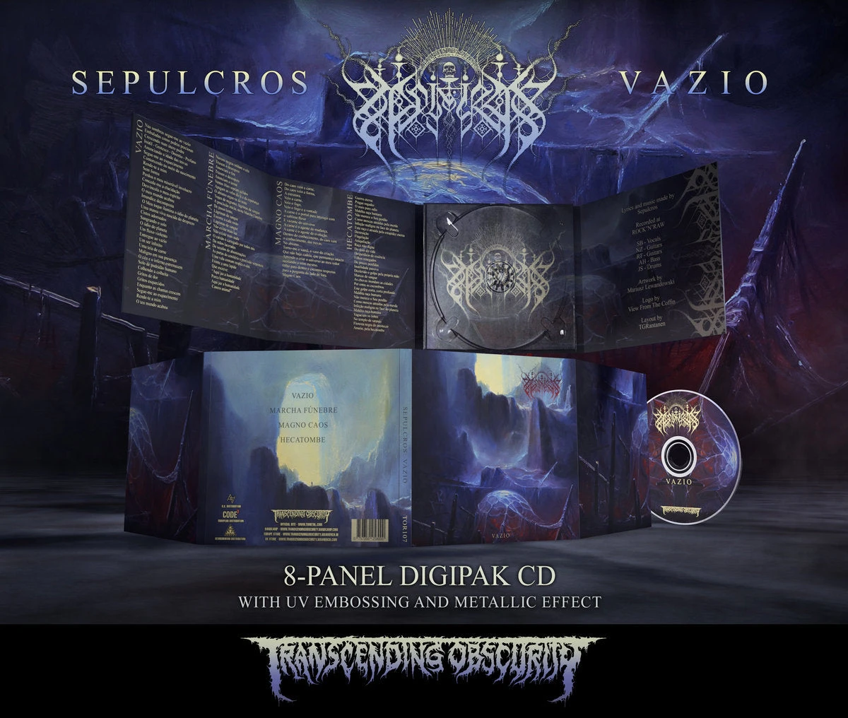 This is a beautiful digipak CD with metallic effect on matte paper and UV lamination done on select parts of the artwork. The layout has been expertly designed by TG Rantanen doing justice to the stunning artwork by Mariusz Lewandowski and logo by View From The Coffin.