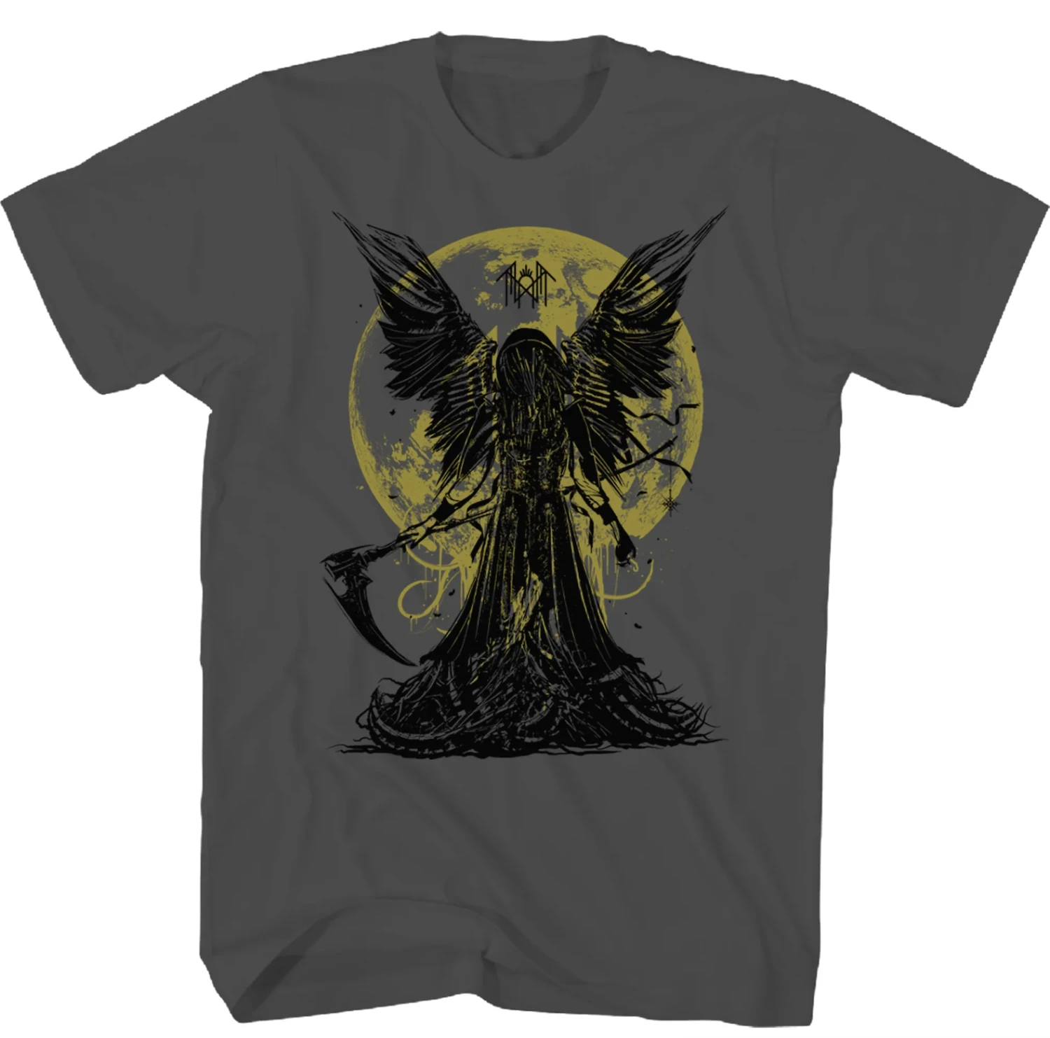 Sleep Token “Reaper Angel” grey t-shirt. Features the bands logo with a reaper. Officially licensed Sleep Token merchandise. Printed on standard apparel.