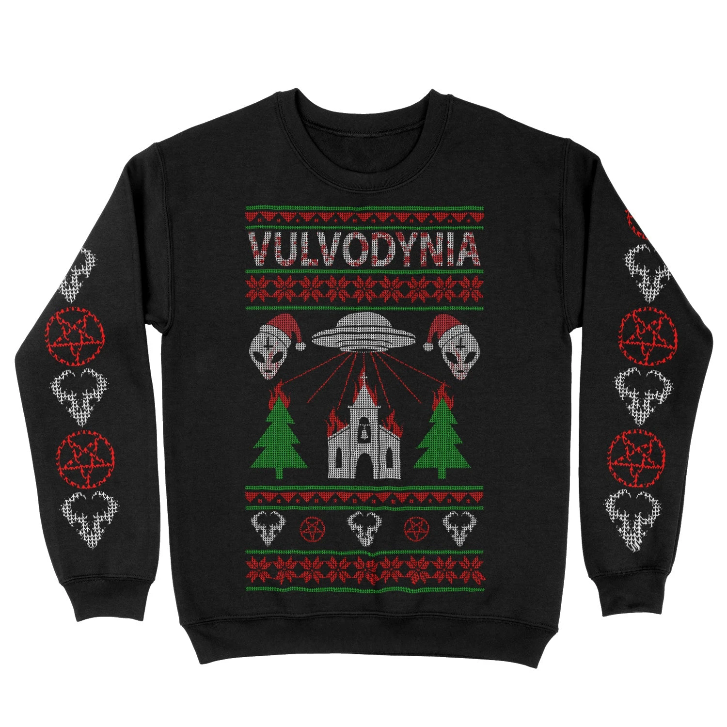 Vulvodynia “Holiday Sweater” three-sided black crewneck sweatshirt