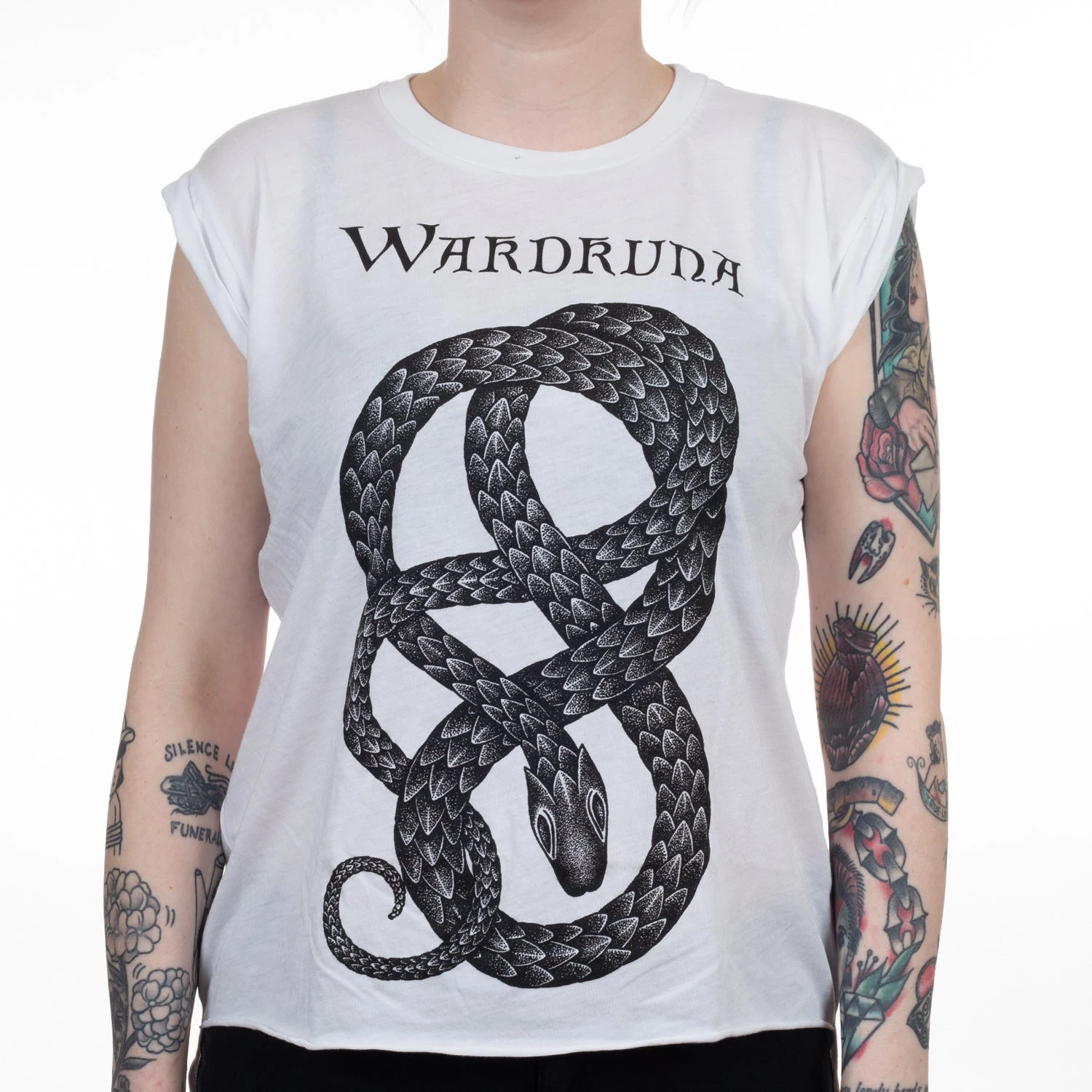 Printed on women’s flowy muscle tee with rolled cuffs (Bella 8804).